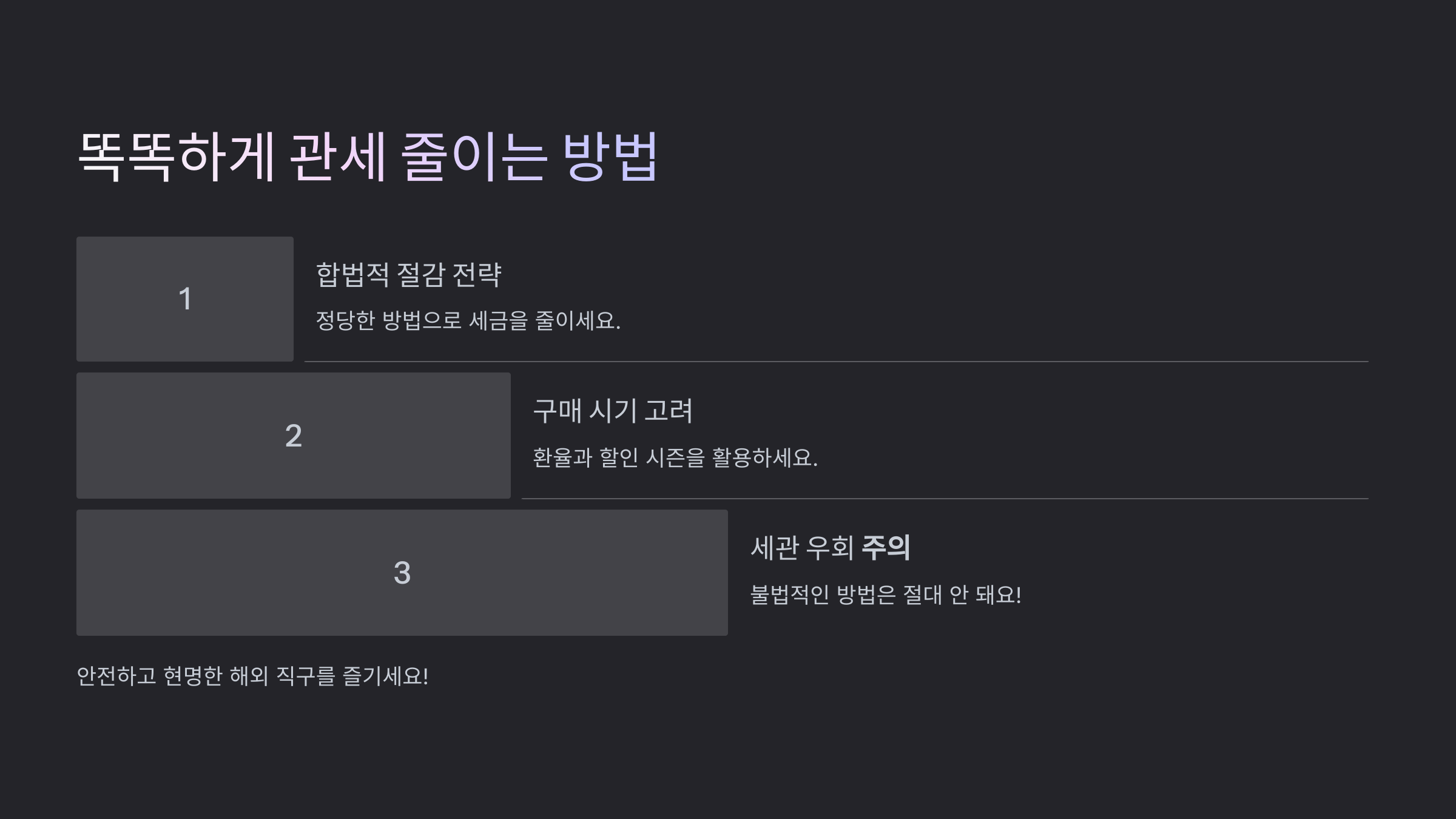 1. 면세 한도 내에서 구매하기