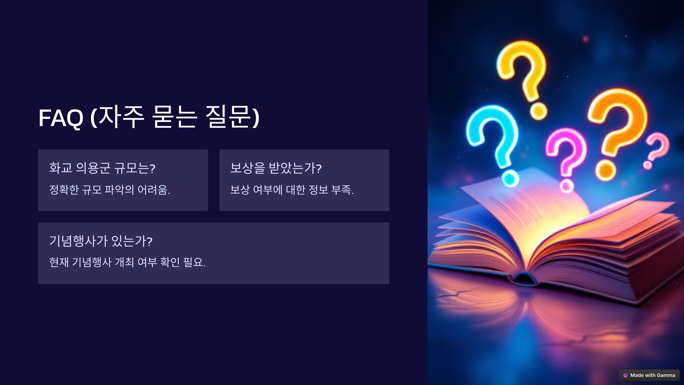 A8. 현재까지는 공식적인 기념비나 박물관은 없지만, 일부 역사 연구 단체들이 관련 전시와 학술 행사를 진행하고 있어요. 앞으로 더 많은 기념 활동이 이루어지기를 기대해요.