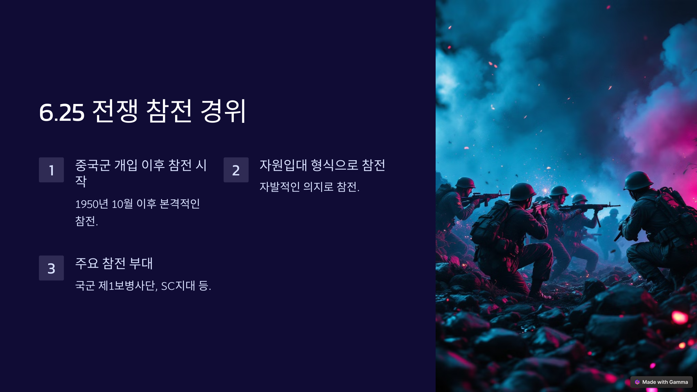 6.25 전쟁 참전 경위 6.25 전쟁이 발발하자 화교 사회도 큰 혼란에 빠졌어요. 일부는 한국을 떠났지만, 남아 있던 화교들은 자신들의 공동체와 생업을 지키기 위해 직접 무기를 들었죠.