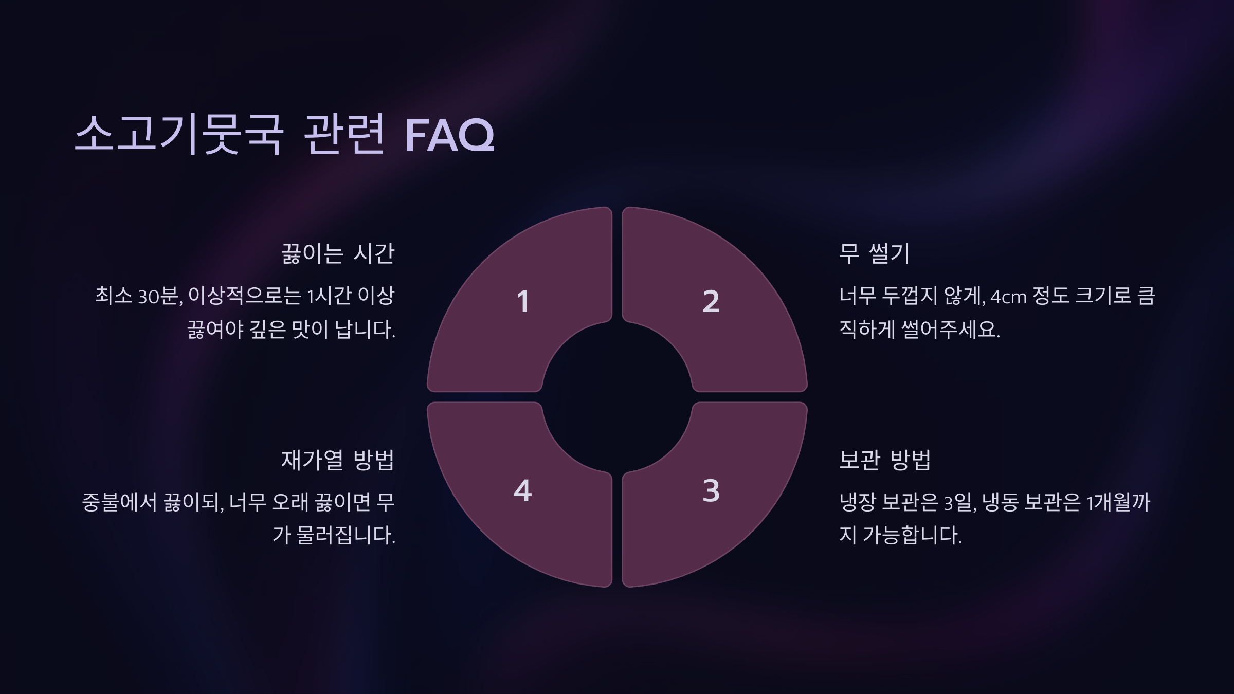 소고기뭇국을 만들 때 자주 궁금해하는 질문들을 정리해봤어요! 😊
