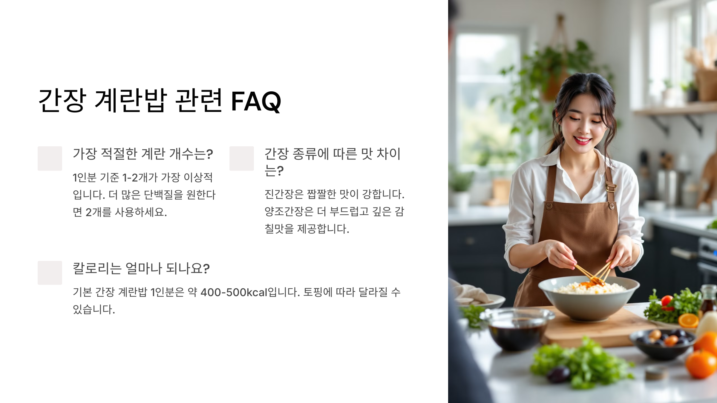 간장 계란밥을 만들 때 자주 궁금해하는 질문들을 정리해 봤어요! 😊
