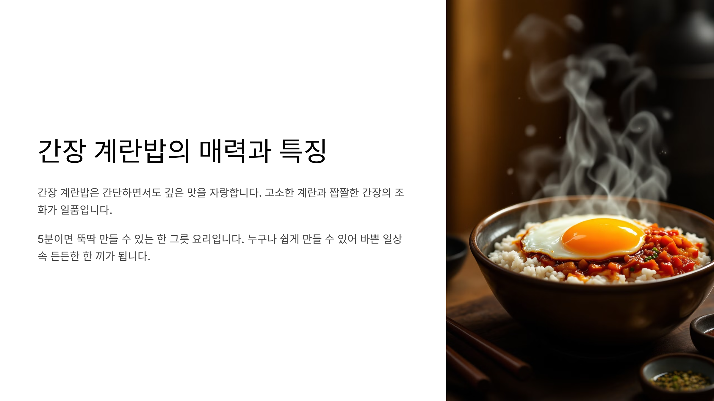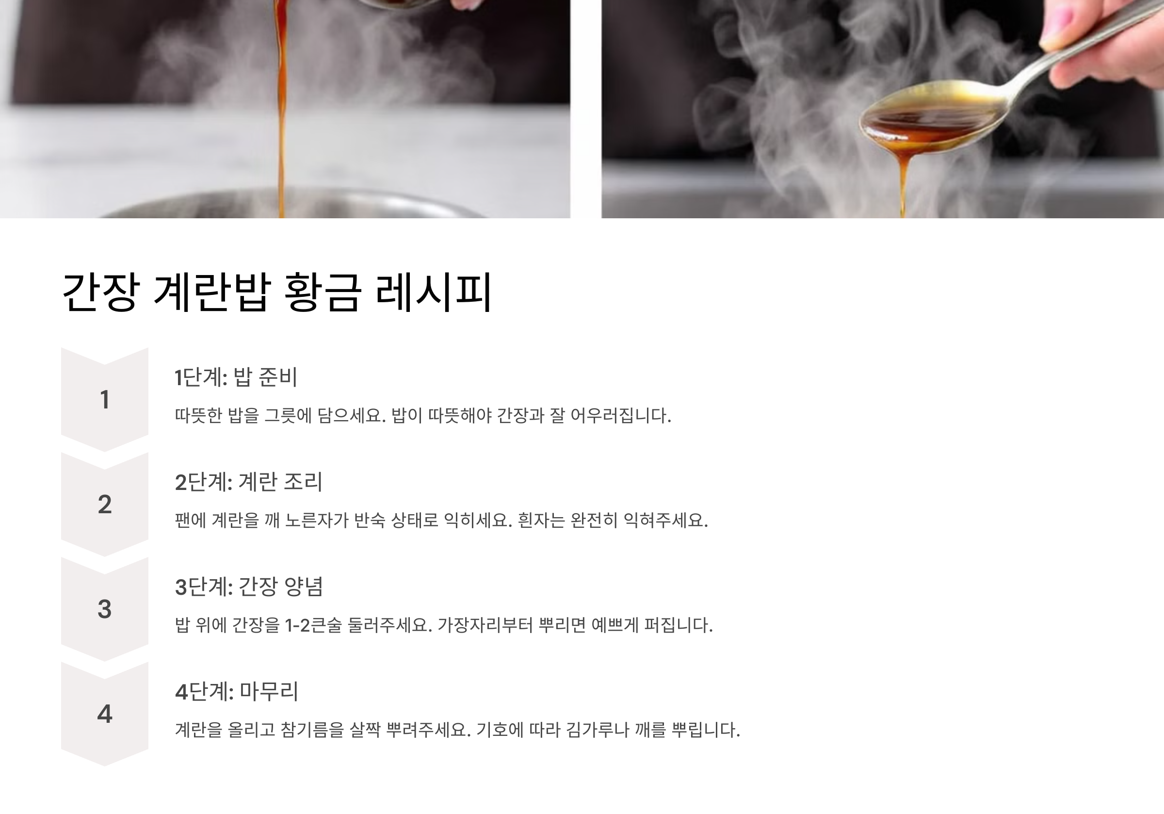 간장 계란밥은 최소한의 재료로도 만들 수 있지만, 좋은 재료를 선택하면 훨씬 더 맛있어져요! 🍳🍚