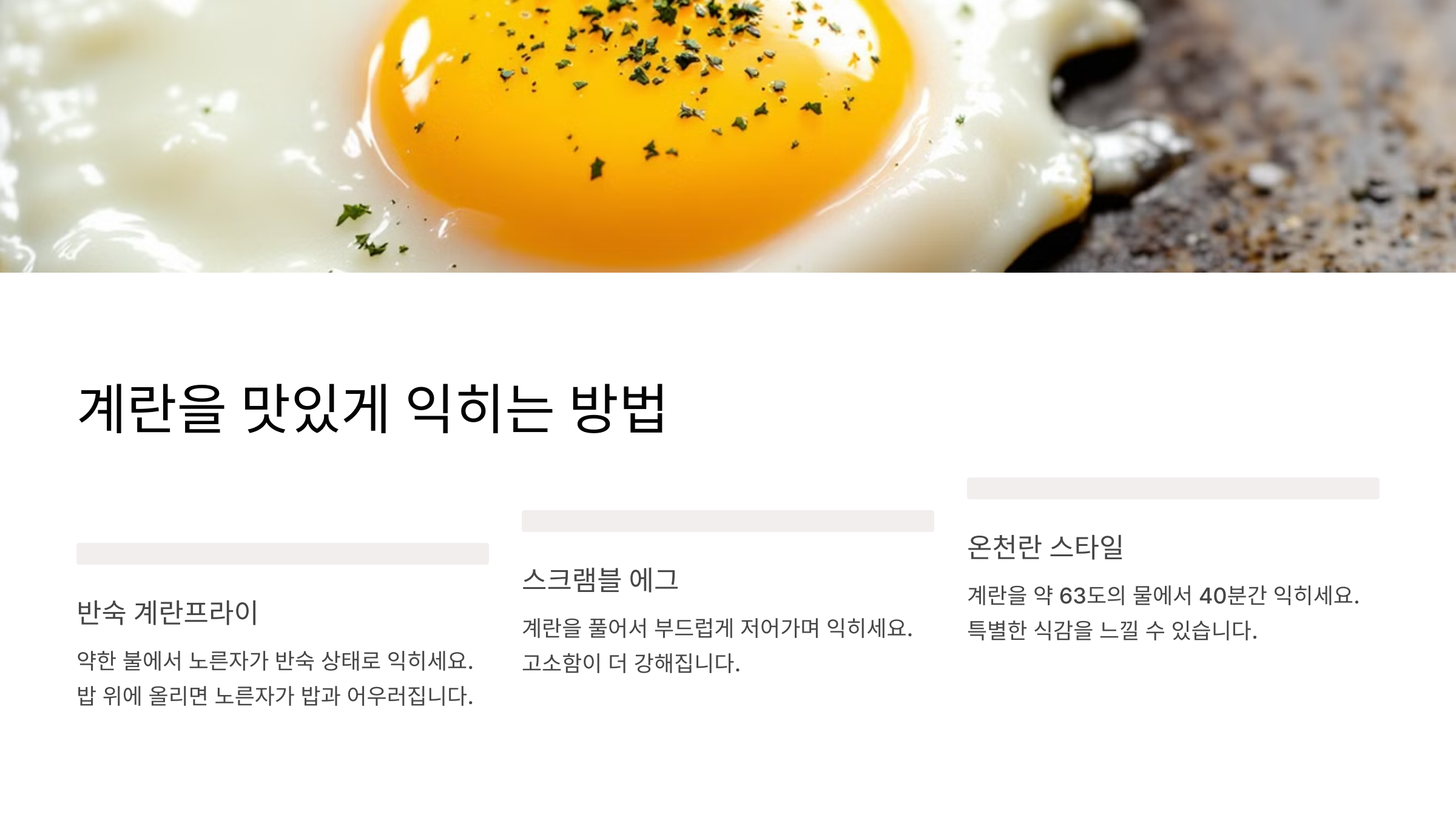 - 계란을 기호에 맞게 반숙, 완숙, 스크램블 중 선택하여 익혀요.