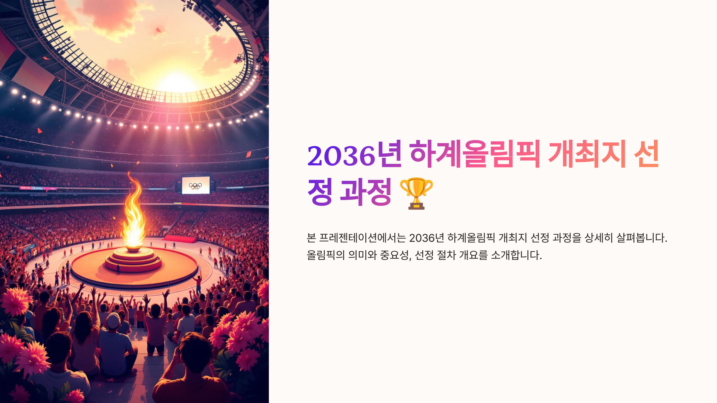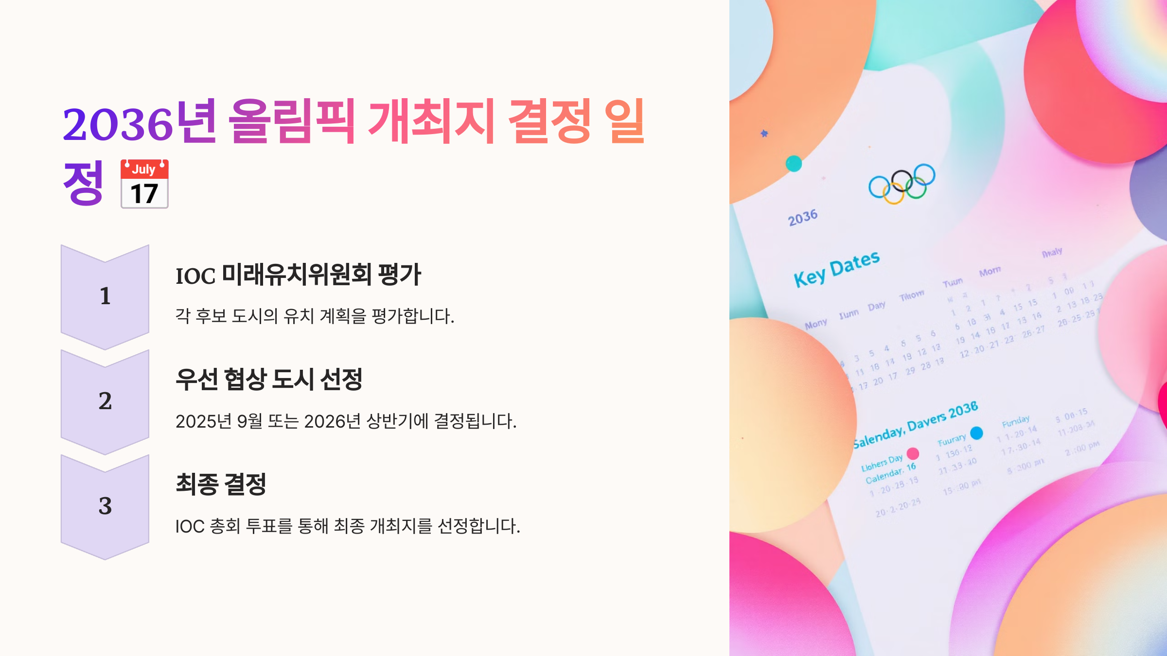 2036년 올림픽 개최지 결정 과정과 후보 도시, 그리고 추진 일정을 자세히 알아볼까요? 🏅