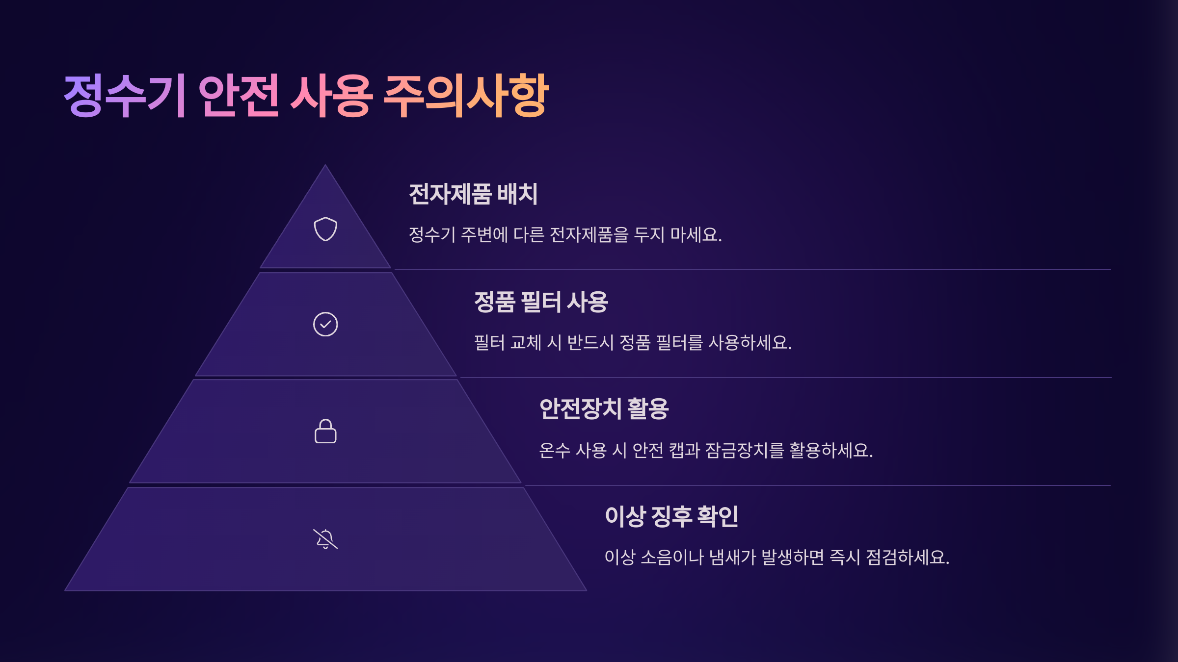 ⚠ 정수기 안전 사용 주의사항