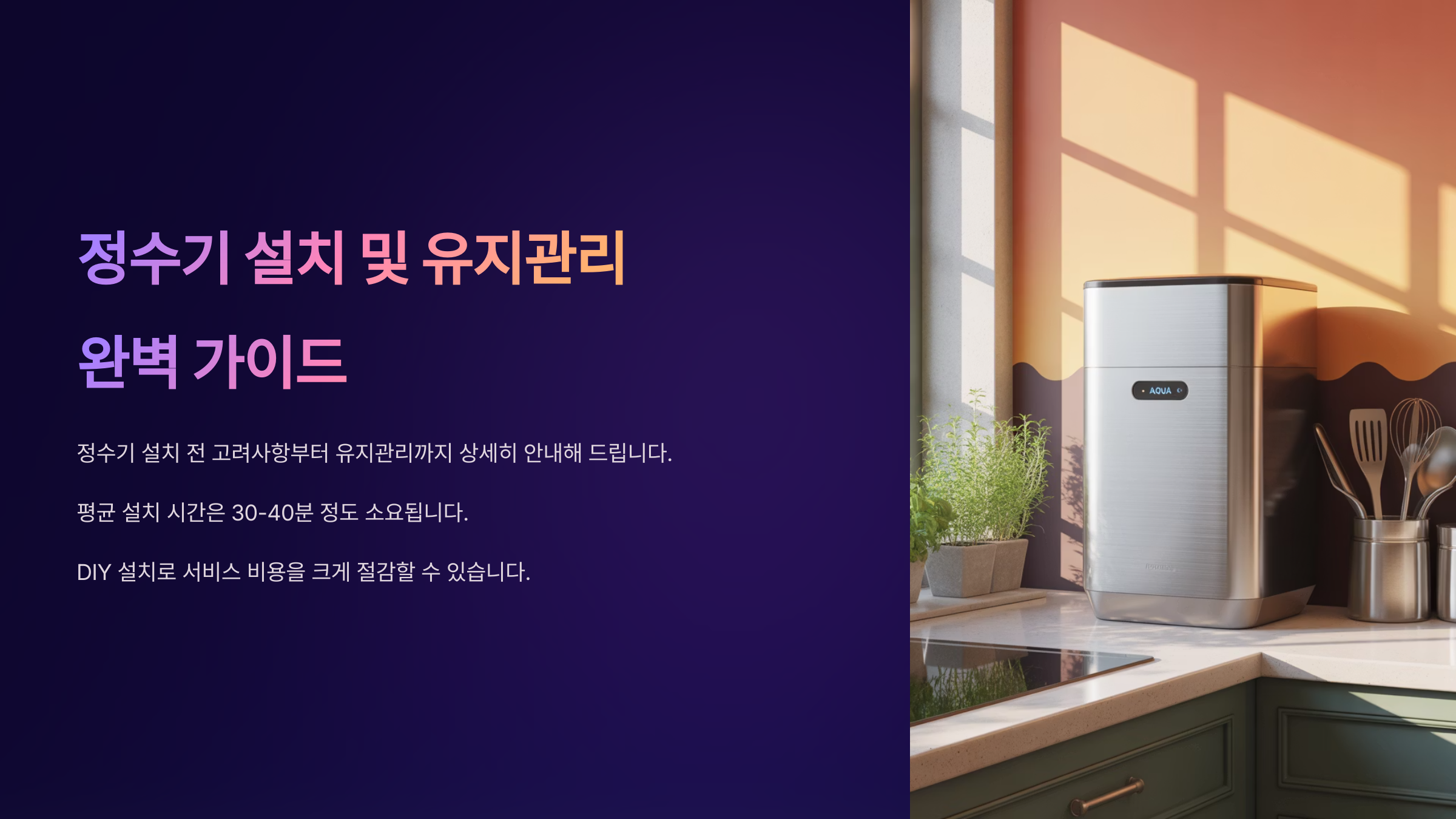 정수기는 우리 집 건강을 책임지는 중요한 가전이에요. 올바른 설치와 관리로 더 오래, 더 맛있는 물을 누려보세요! 💧
