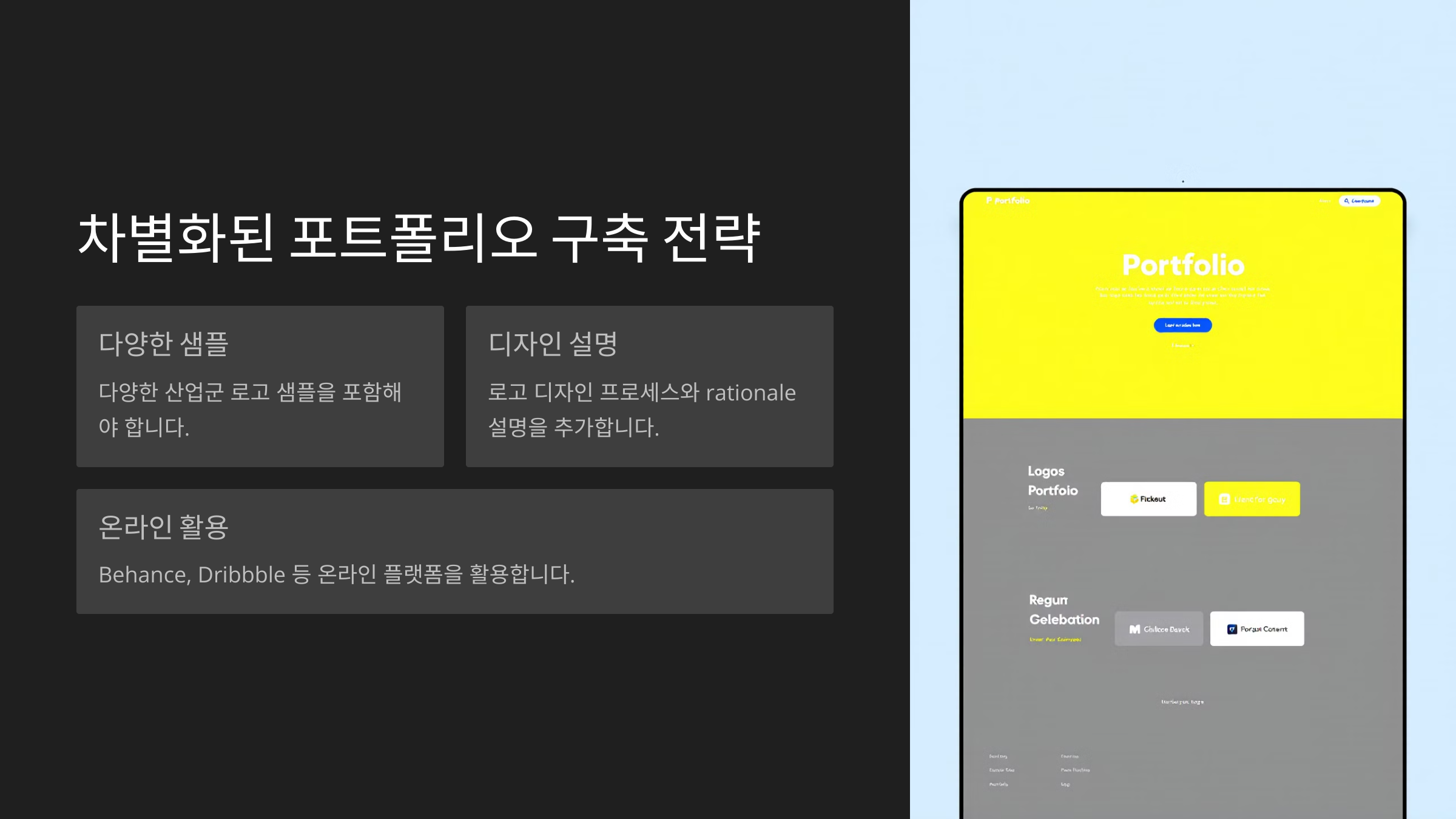 그렇다면 어떤 포트폴리오가 효과적일까요? 단순히 로고 이미지만 올리는 것이 아니라, 브랜드의 스토리와 디자인 과정까지 설명하는 것이 좋아요. 예를 들어, "클라이언트의 요구 ➝ 디자인 과정 ➝ 최종 결과" 형태로 정리하면 더욱 신뢰를 얻을 수 있어요. 📊