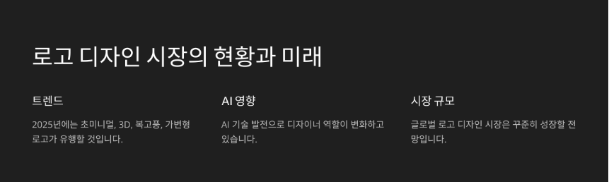 로고 디자인 시장은 빠르게 성장하고 있어요. 인터넷과 SNS의 발달로 인해 개인 브랜드, 스타트업, 중소기업들이 로고를 필요로 하게 되었어요. ✨