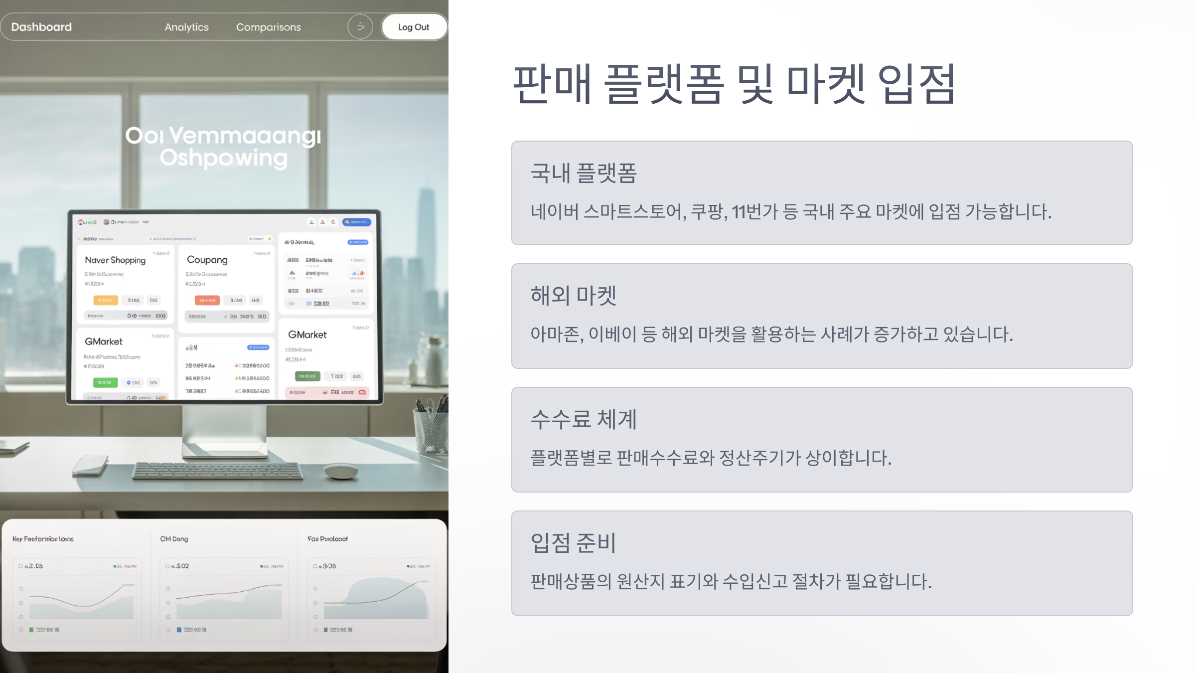 판매는 스마트스토어, 쿠팡파트너스, 11번가, 브랜디, 마이소호 등에서 가능해요. 각 마켓마다 수수료와 고객층이 다르기 때문에 전략이 필요해요! 💰