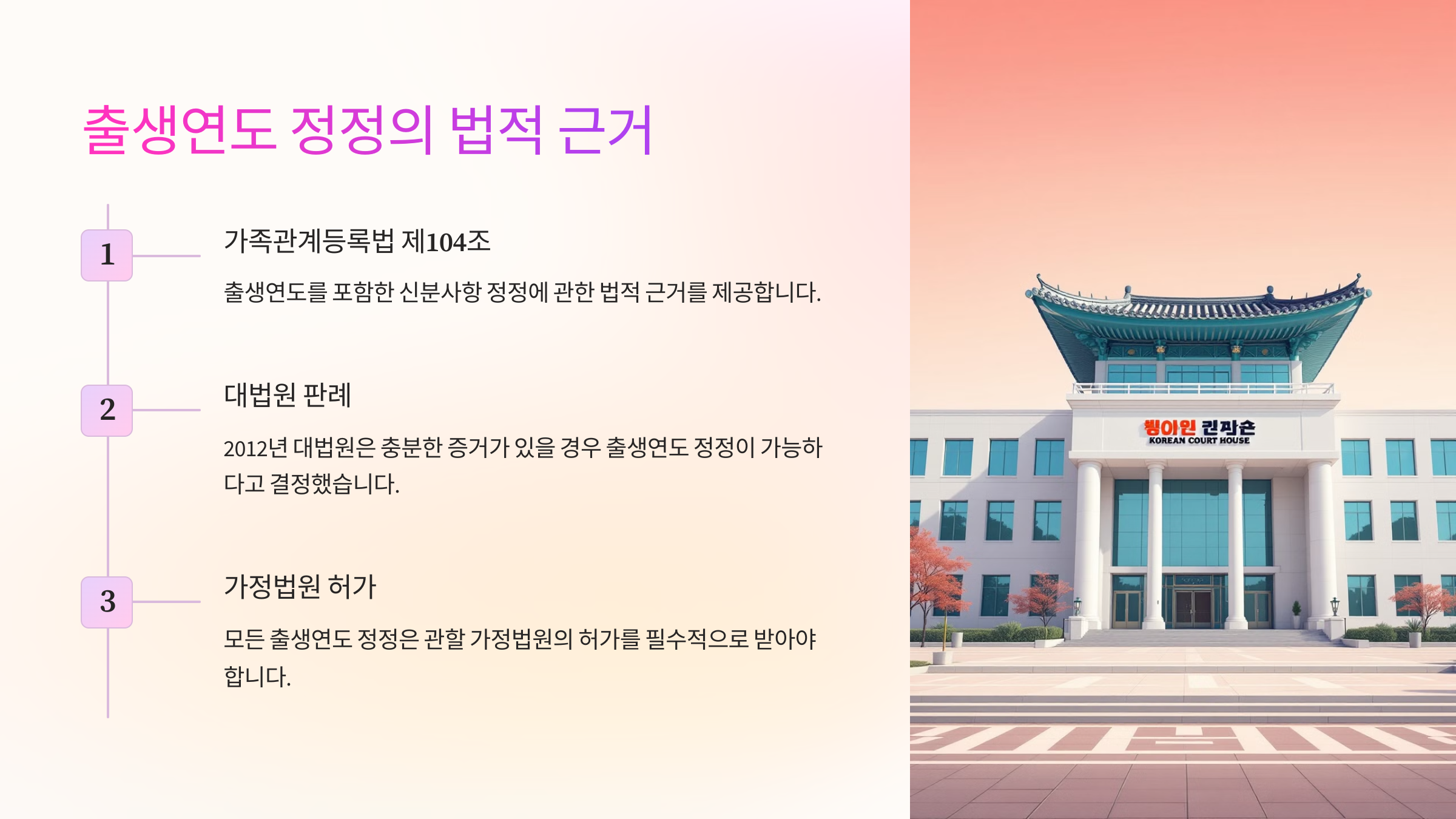 즉, 출생신고 오류나 지연이 확인되면 법원에서 출생연도를 정정할 수 있어요. ⚖