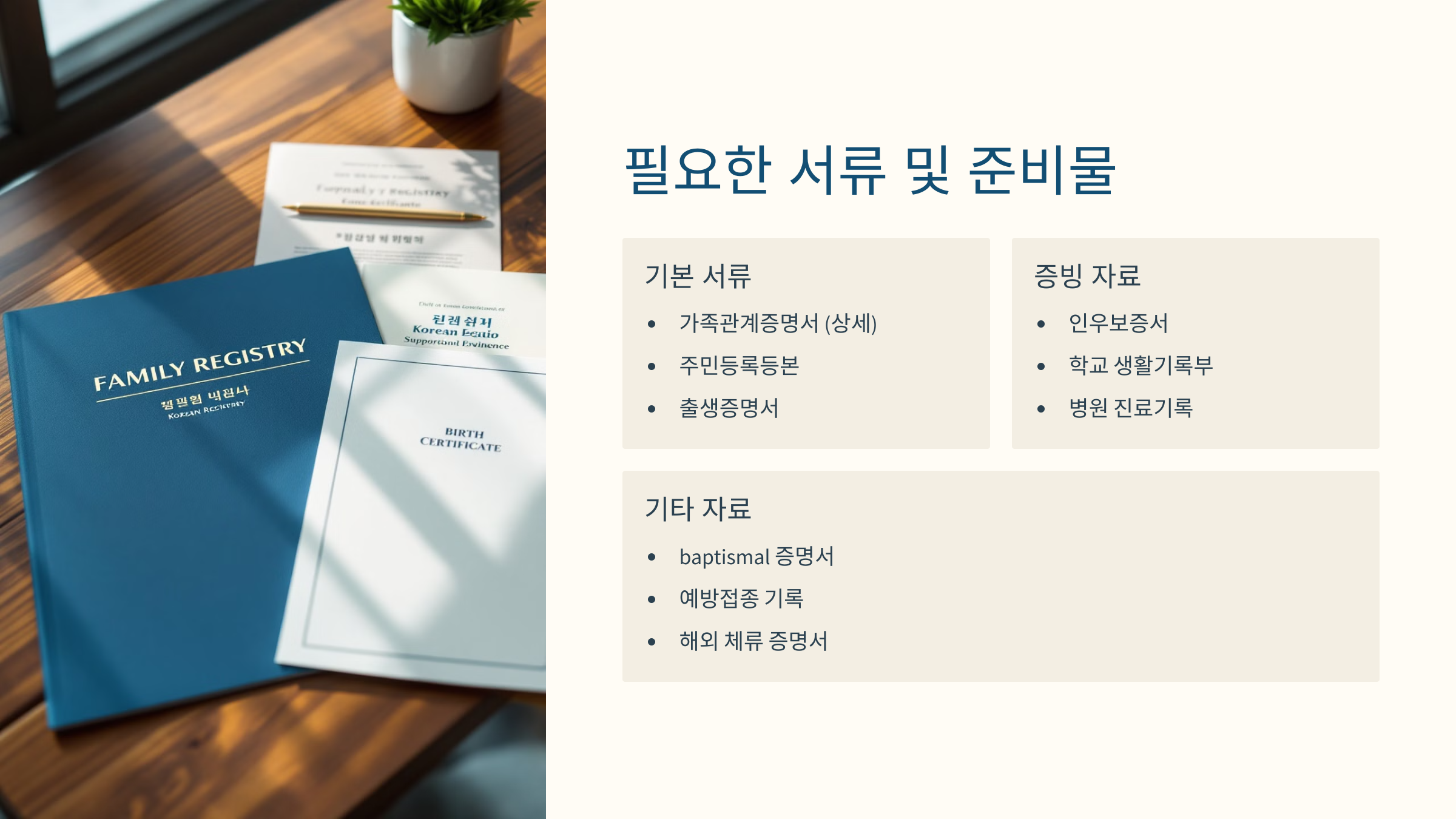 - 서류 준비 - 출생증명서, 가족관계등록부 등 필수 서류 준비