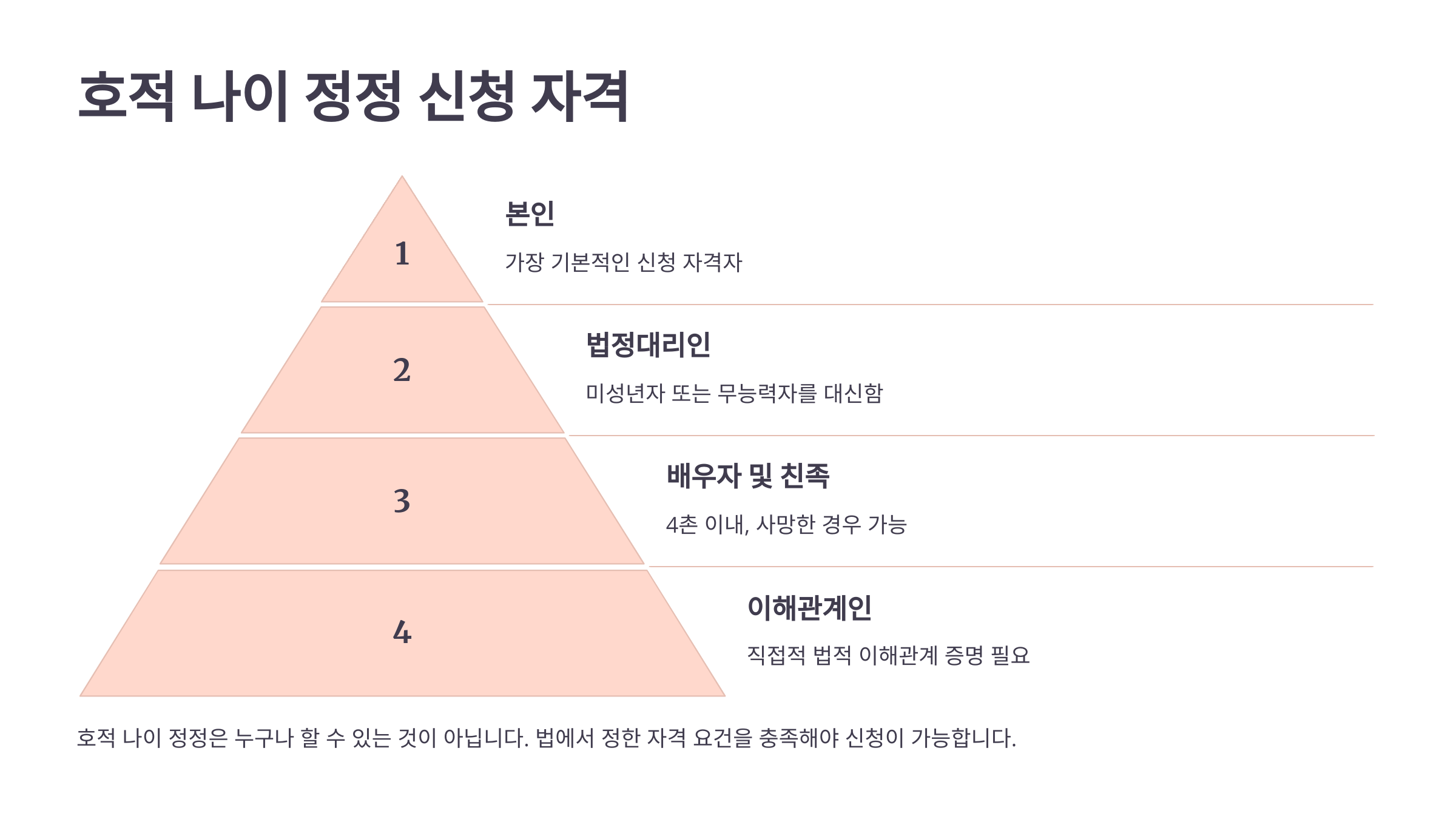 호적 나이 정정 신청은 아무나 할 수 있는 것이 아니에요. 법적으로 인정받을 만한 사유가 있어야 하고, 일정한 요건을 충족해야 해요. 📜