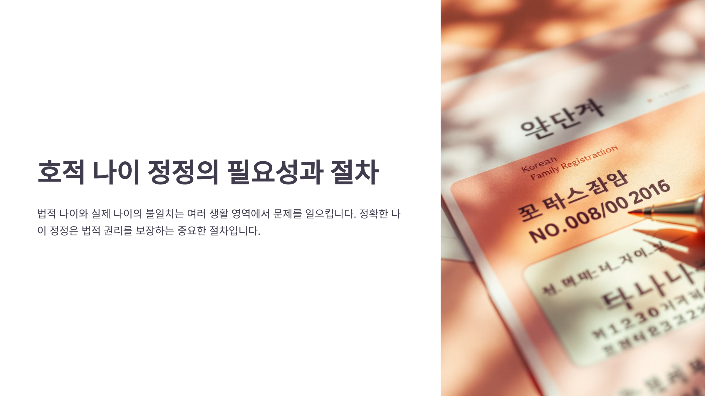 "호적에 적힌 나이를 바꿀 수 있을까?" 🤔 많은 사람들이 한 번쯤 궁금해하는 문제예요.