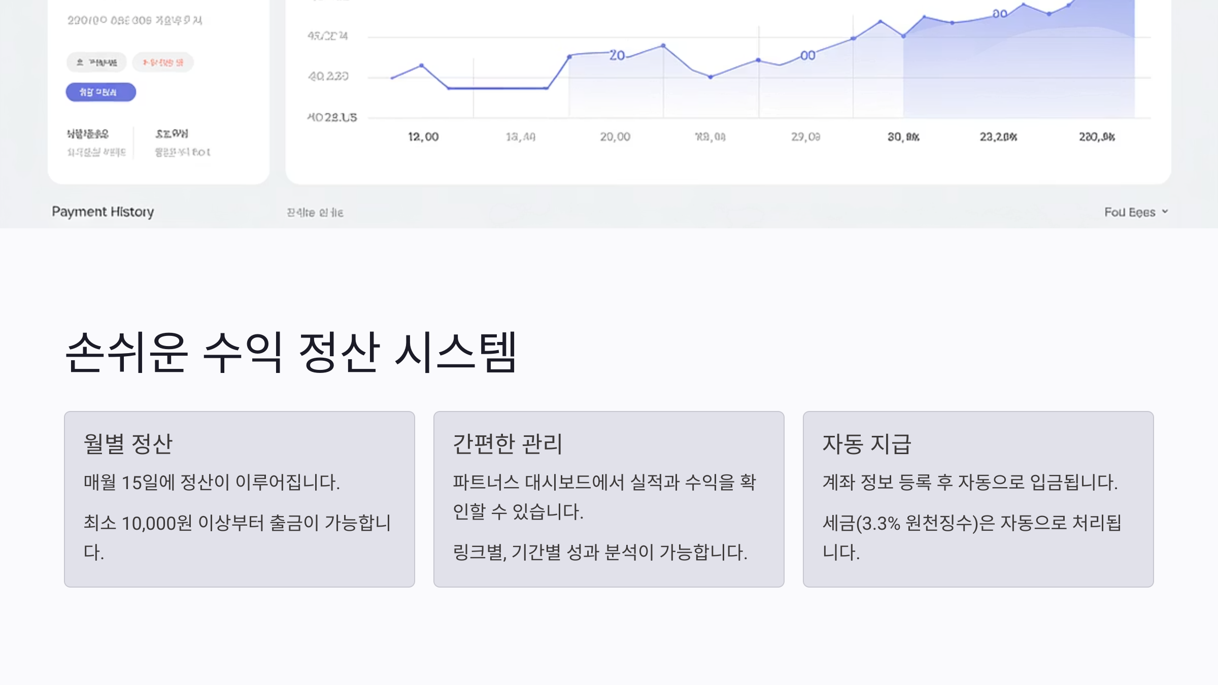 💳 정산 구조 - 수익 발생일 기준 다음 달 지급 - 수익 1,000원 이상 시 자동 입금 - 세금 신고는 3.3% 원천징수 → 연 1회 종합소득세 신고 가능