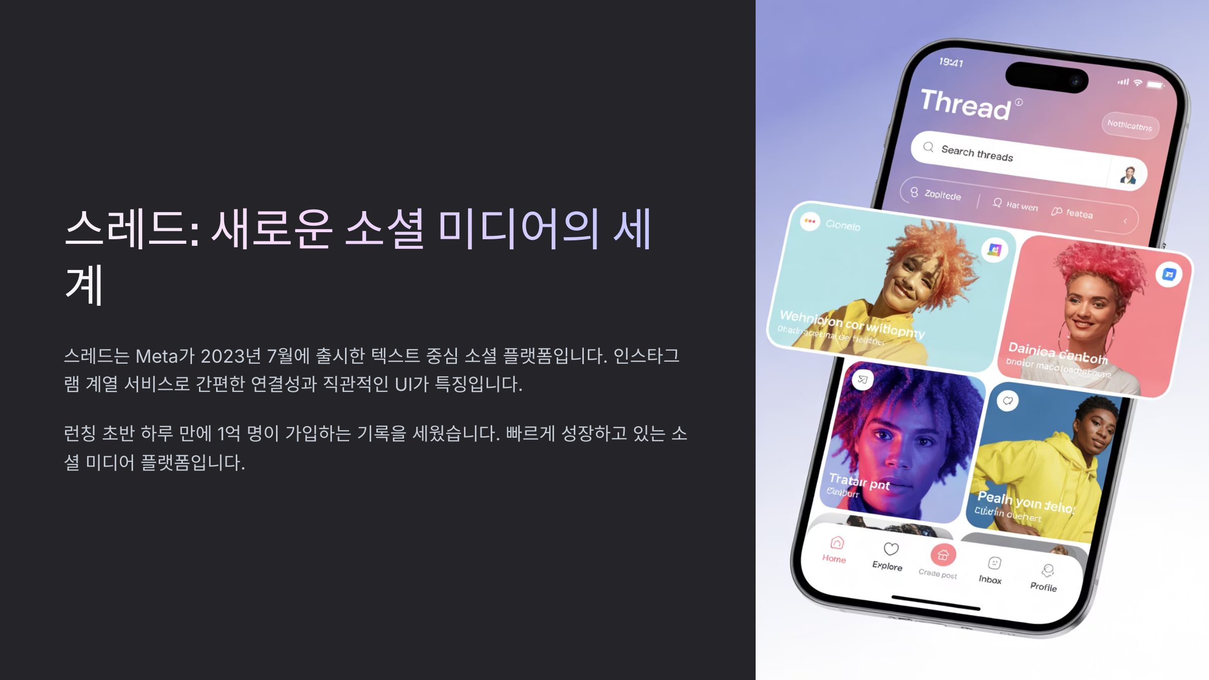 2023년 7월 론칭 이후, 트위터 대안 플랫폼으로 주목받기 시작했죠. 특히 트위터에서 불편을 겪었던 사용자들이 대거 스레드로 이동하면서 급격히 성장했어요. 전 세계적으로 수천만 명의 사용자를 확보하며, 텍스트 중심의 새로운 소통 문화를 이끌고 있답니다.