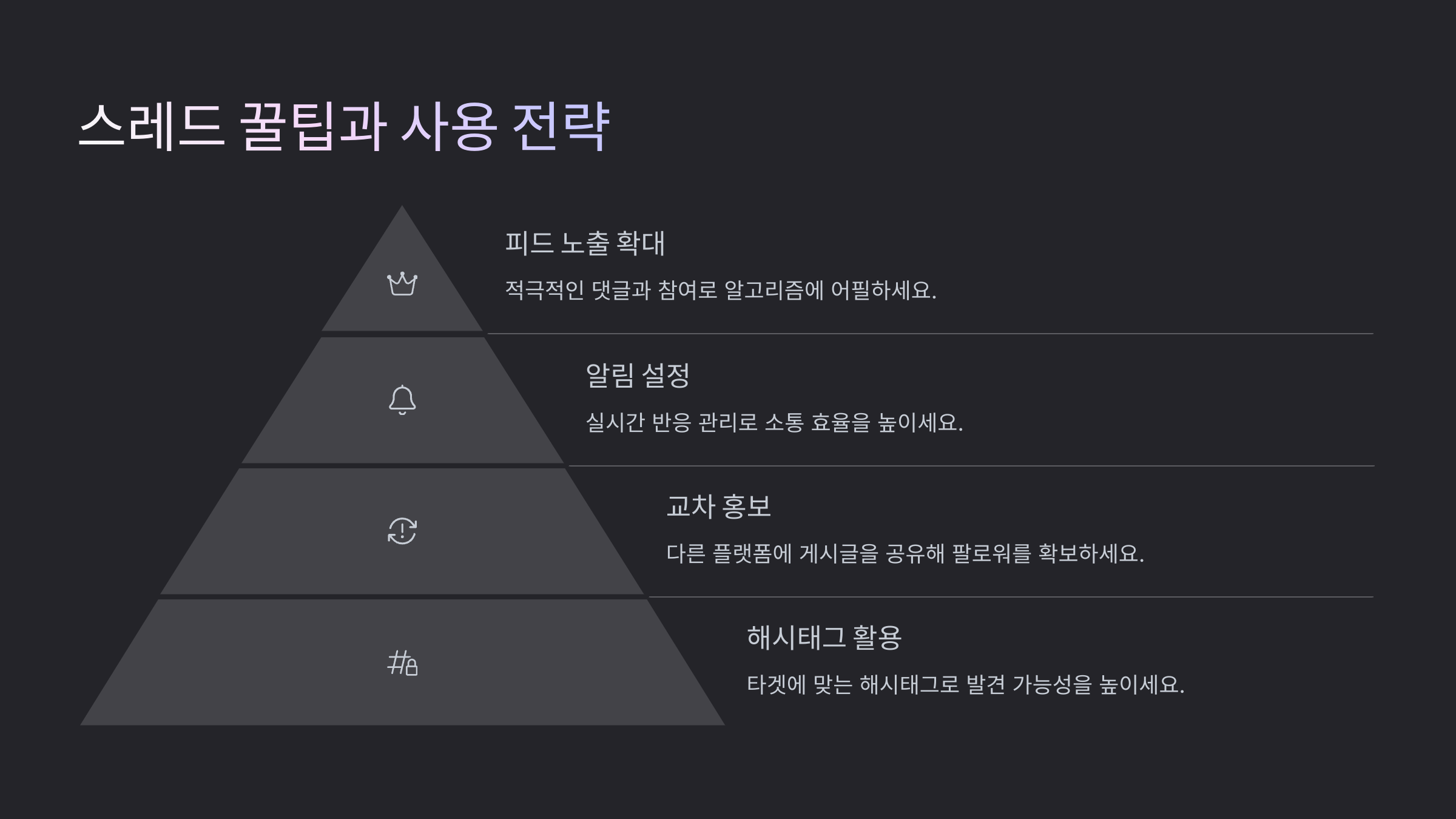 스레드를 제대로 활용하려면 단순히 글을 쓰는 것 이상으로 전략이 필요해요! 매일 수많은 글들이 올라오는 플랫폼이기 때문에, 남들과는 다른 자신만의 매력을 보여주는 게 중요하죠. 지금부터 스레드에서 더 돋보일 수 있는 꿀팁을 알려줄게요 ✨