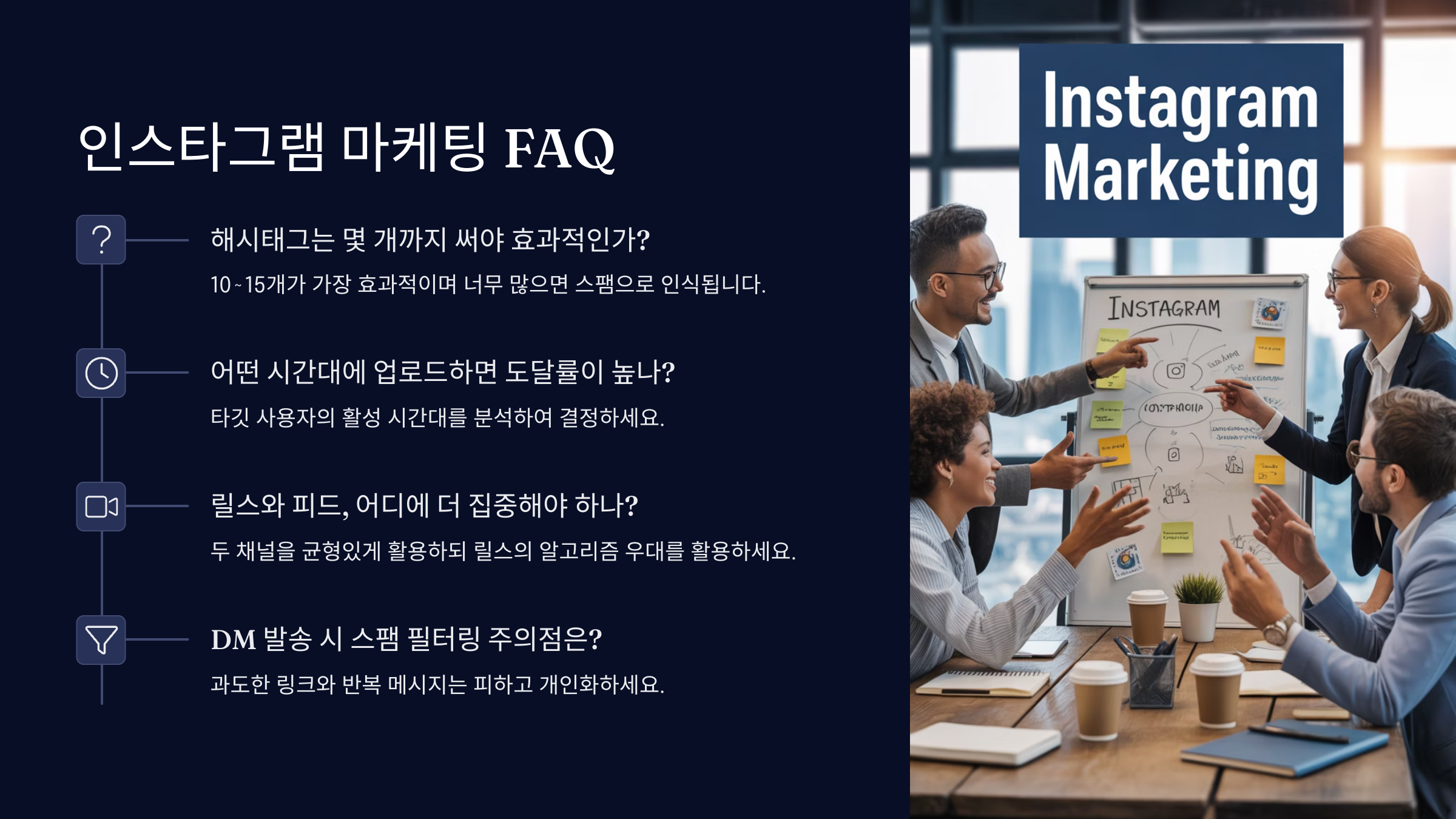 Q1. 인스타그램 마케팅에 돈이 많이 드나요?A1. 아니에요! 처음엔 콘텐츠 중심으로 무자본으로도 충분히 시작할 수 있어요.