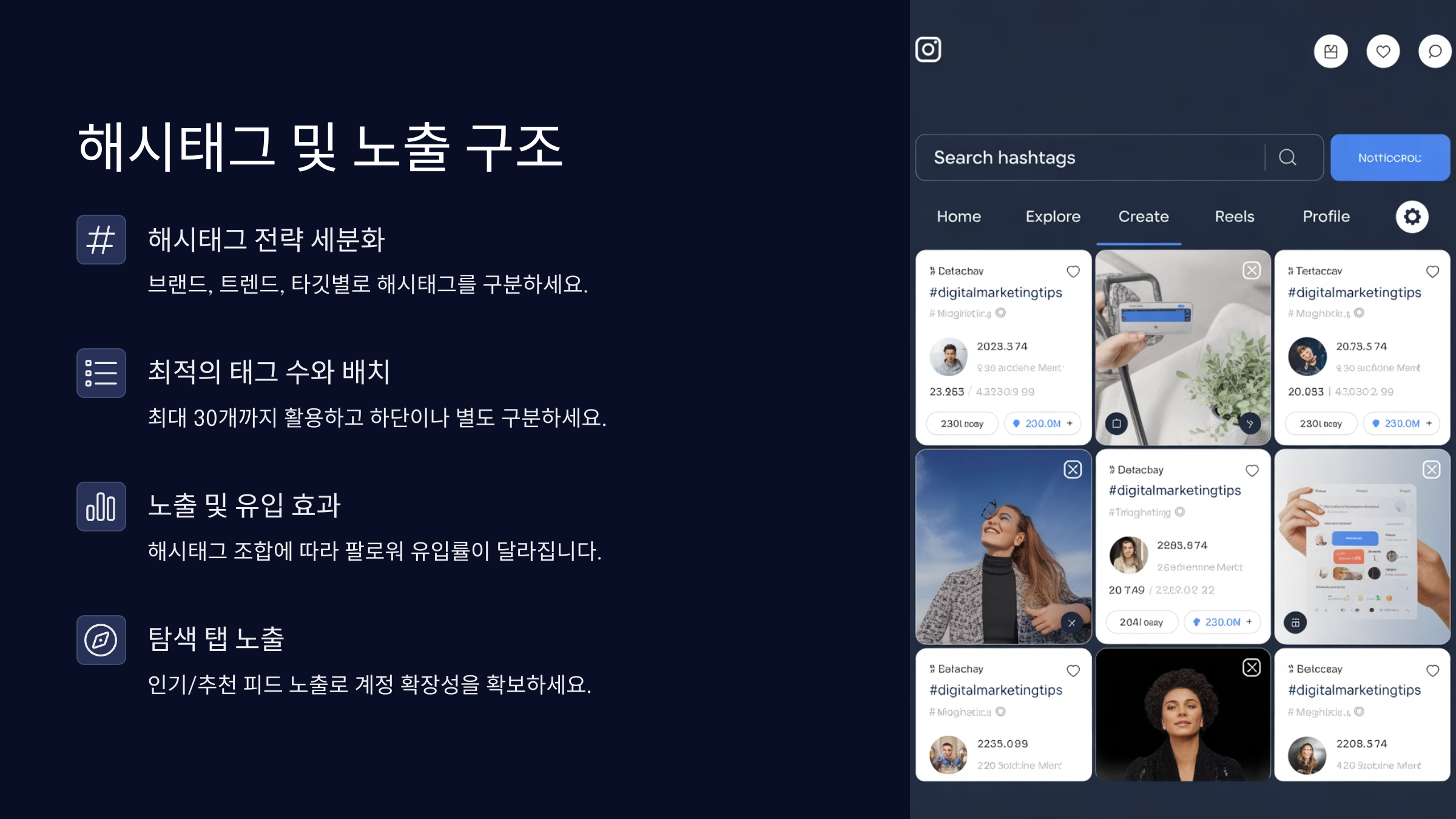 해시태그는 ‘노출’이 전부고, 콘텐츠는 ‘체류’를 담당해요. 둘이 맞물려야 인게이지먼트가 올라가요! 📊