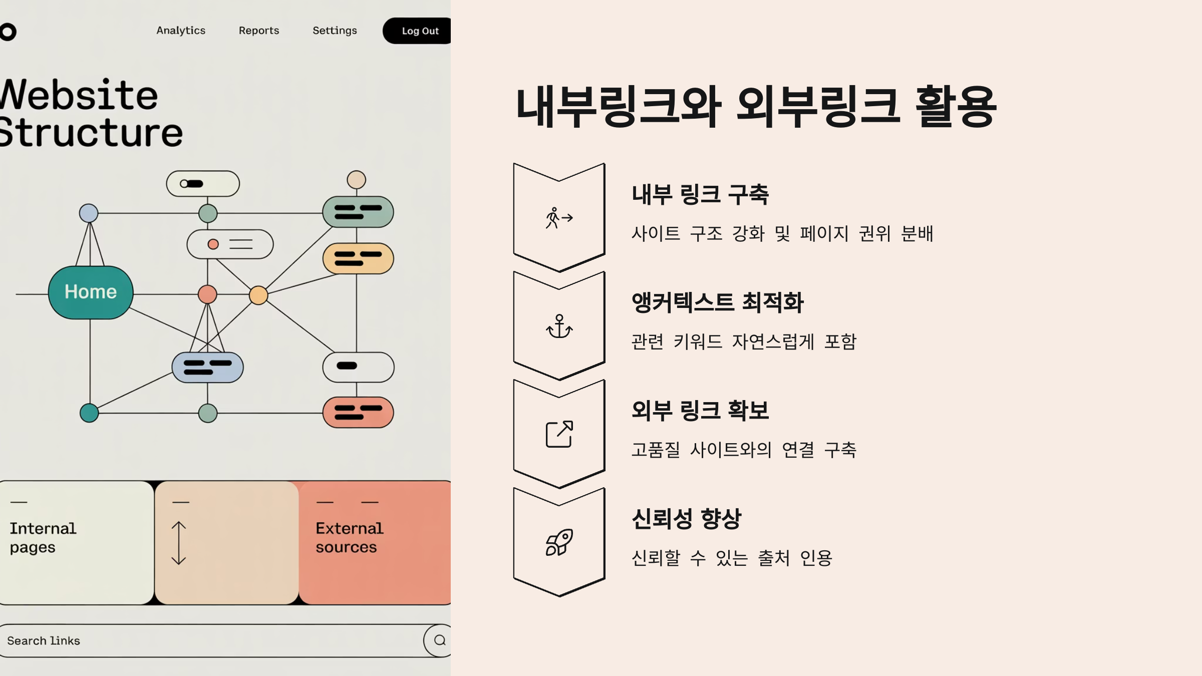 내부링크와 외부링크 활용 SEO에선 ‘링크 구조’가 정말 중요해요. 검색엔진은 글을 하나로 보지 않고, 전체 콘텐츠 네트워크로 판단하기 때문에 내부링크는 SEO 점수에 직접적인 영향을 줘요!