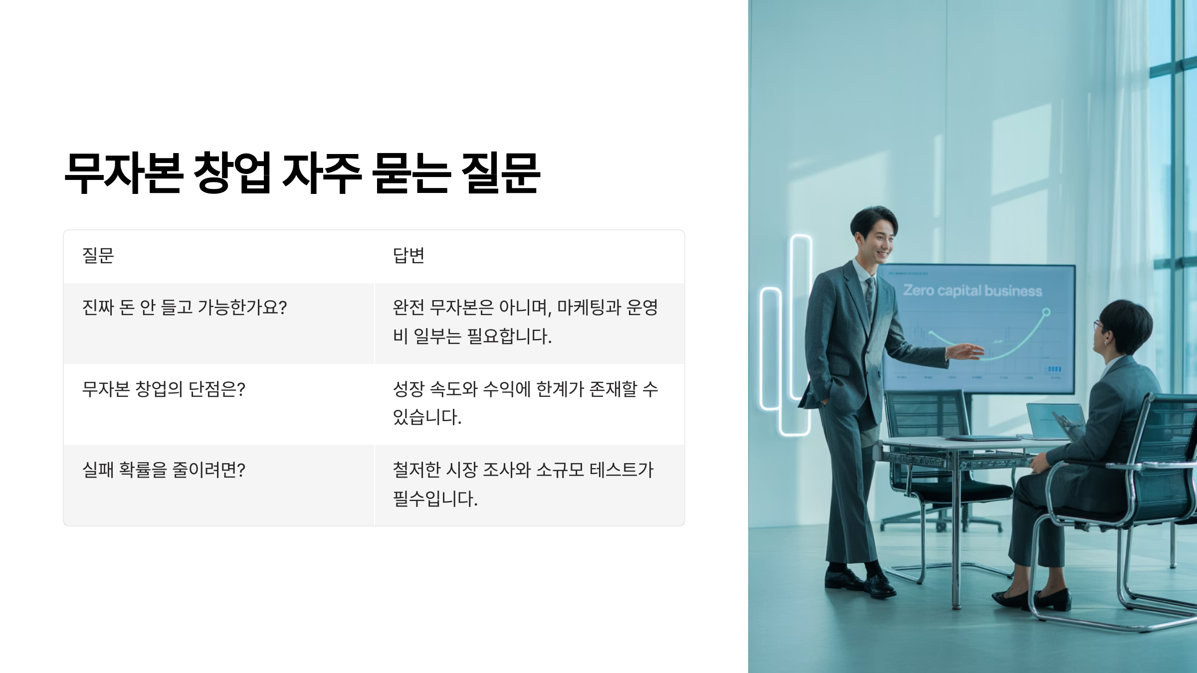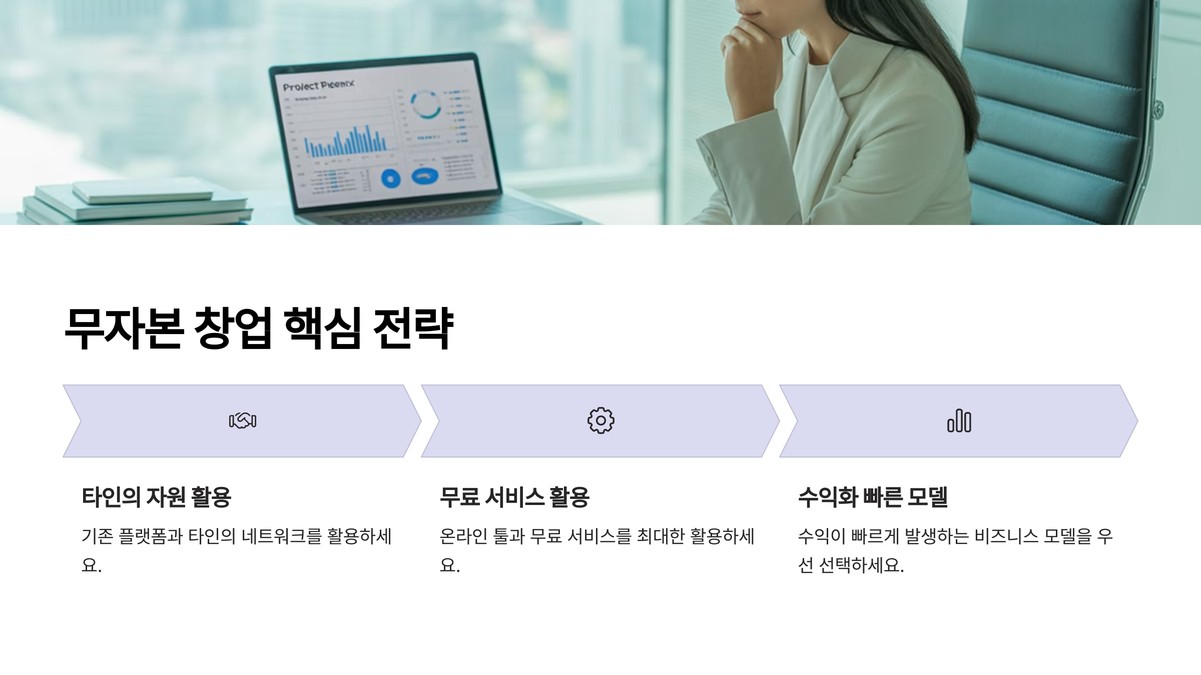 Q1. 무자본 창업은 얼마나 걸리면 수익이 나나요?A1. 보통 2~4주 안에 첫 수익이 가능하며, 콘텐츠형은 더 빠르게 수익화되기도 해요.