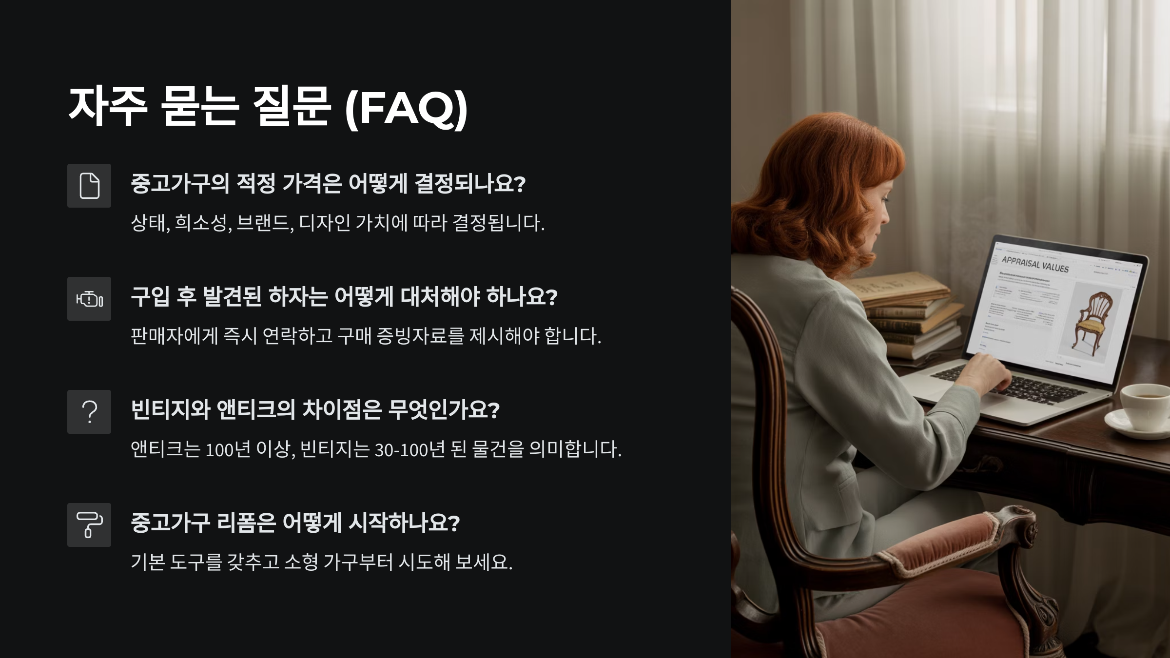 중고가구를 잘 고르면, 세상에 하나뿐인 나만의 공간을 연출할 수 있어요. 물론 사기나 하자가 있는 제품도 있을 수 있으니 꼼꼼하게 따져보고 선택하는 안목도 필요해요. 이 글에서는 중고가구를 제대로 구입하는 방법부터 요즘 유행하는 중고가구 스타일까지 알차게 소개할게요!🛋️