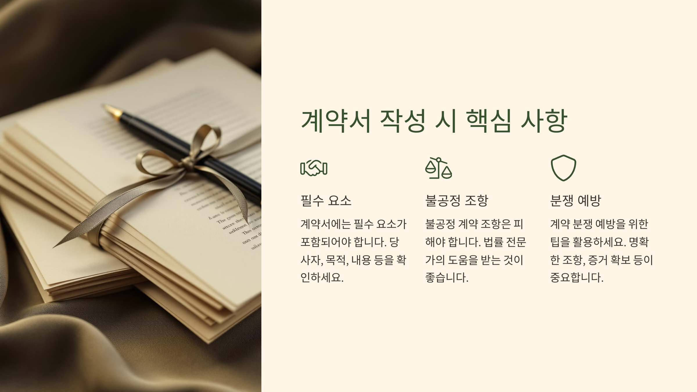 창업을 하다 보면 다양한 계약을 체결해야 하는데, 계약서를 작성할 때 꼭 법적인 보호를 받을 수 있도록 주의해야 해요.