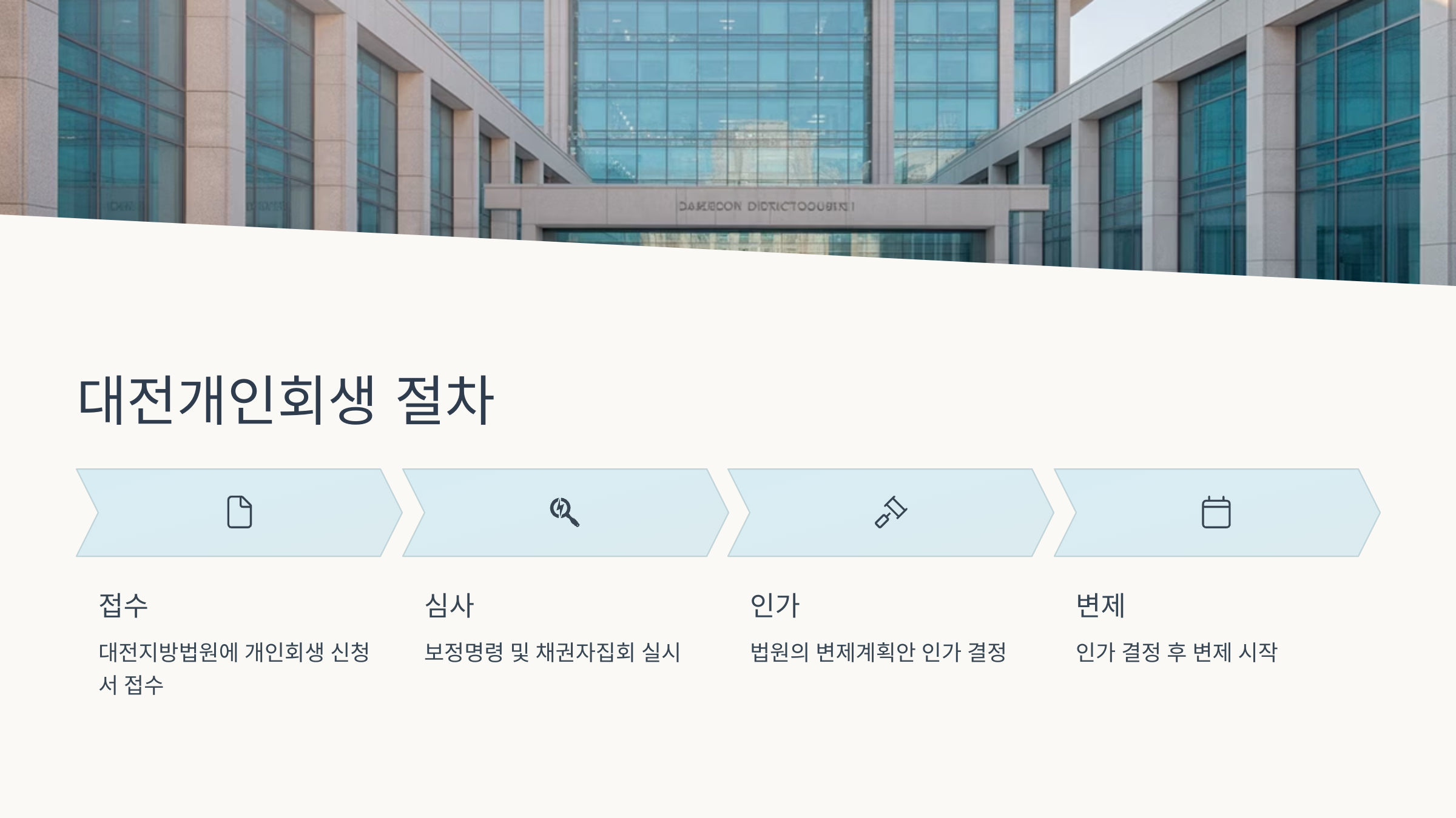 결국 개인회생은 단순히 "갚겠습니다"가 아니라 "이렇게 갚을 수 있습니다"를 보여주는 게 핵심이에요. 다음은 대전지방법원에서 진행되는 회생 절차의 특징을 소개할게요! 😊
