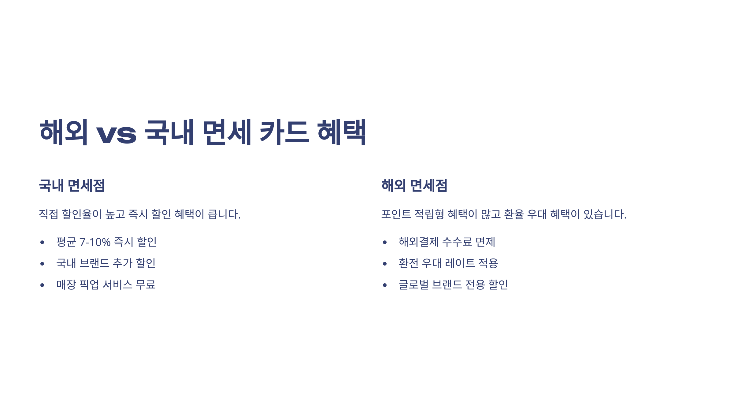 🌐 국내 vs 해외 면세 카드 혜택 비교