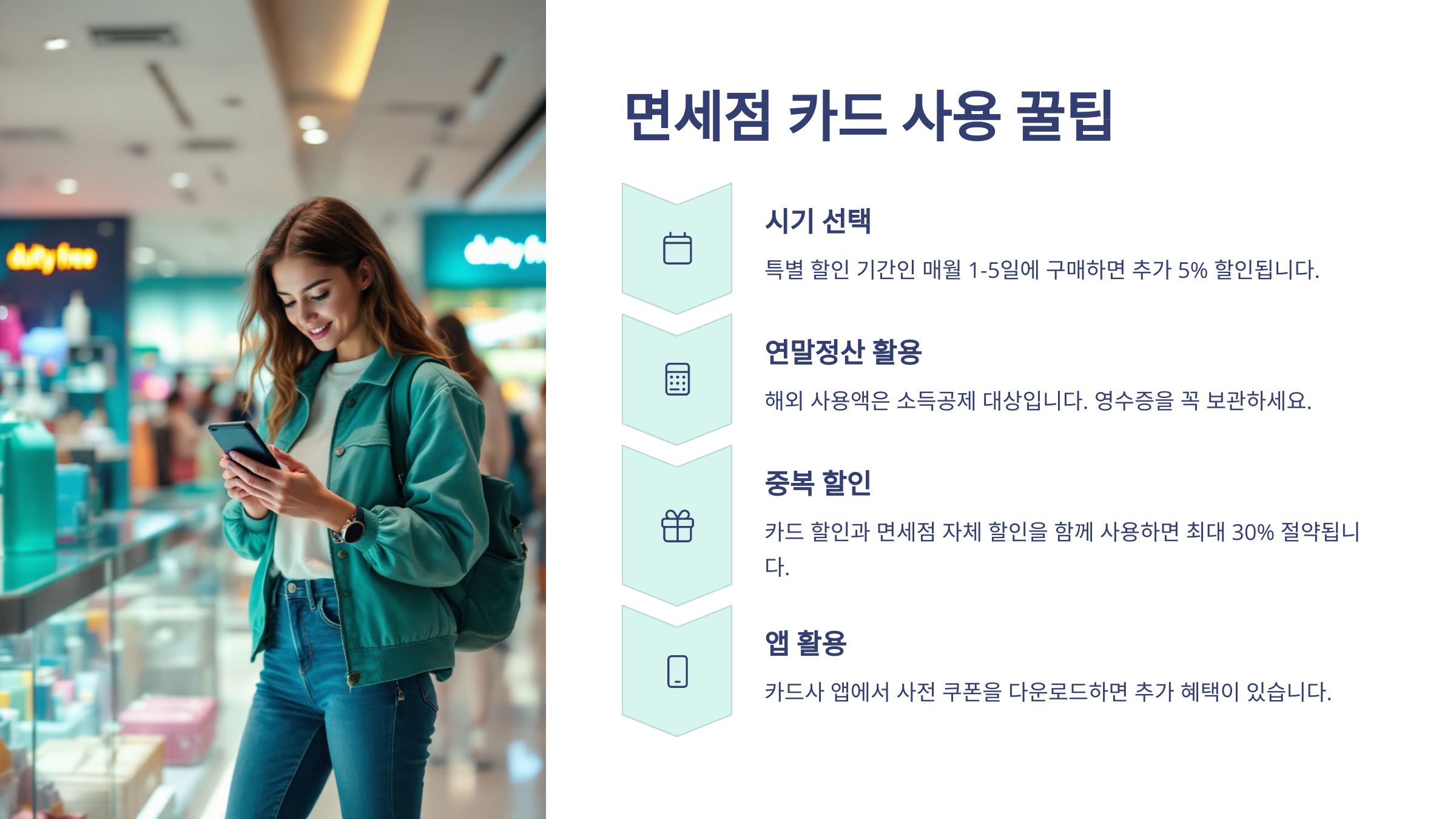 면세점 할인 카드를 똑똑하게 사용하는 건 단순히 '카드만 꺼내는 것' 이상의 전략이 필요해요. 할인 조건, 결제 방식, 적립 포인트 사용 시기 등 세세한 부분까지 챙기면 훨씬 효율적으로 혜택을 누릴 수 있어요 💡
