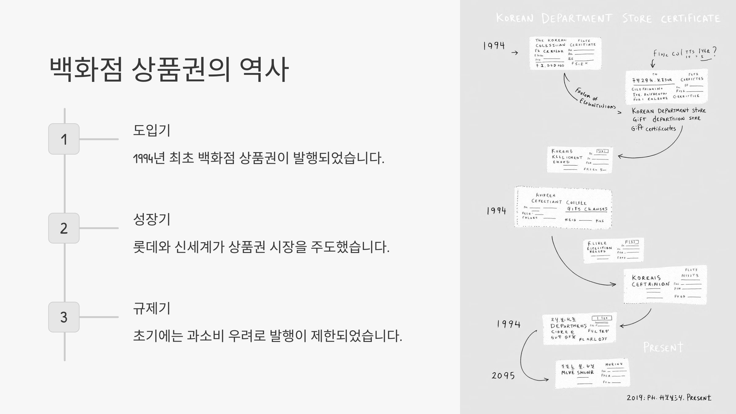 상품권의 개념은 1970~1980년대 유통업체가 고객을 끌어들이기 위한 마케팅 수단으로 도입되었어요. 당시에는 주로 명절 선물용으로 유통되었지만, 이후 결혼 문화나 혼수 구매에 연계되면서 '사전 할인된 현금'처럼 사용되기 시작했어요.