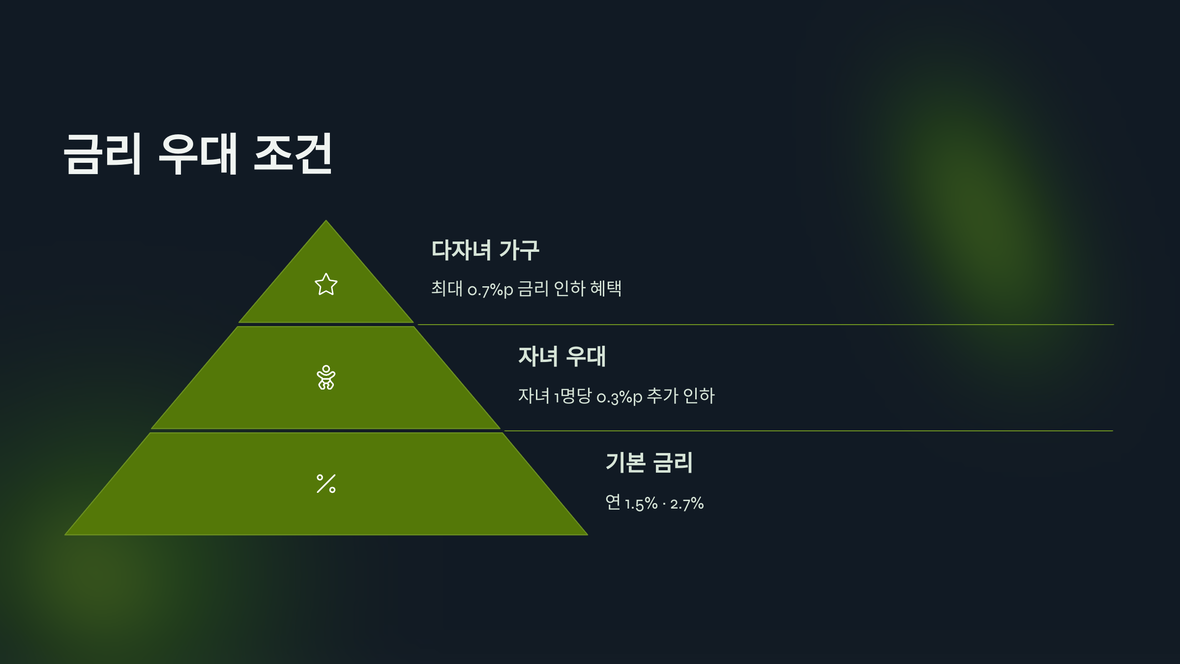 A7. 네! 자녀 수에 따라 우대 금리 혜택이 있어요. 한 자녀만 있어도 금리 인하 적용돼요.