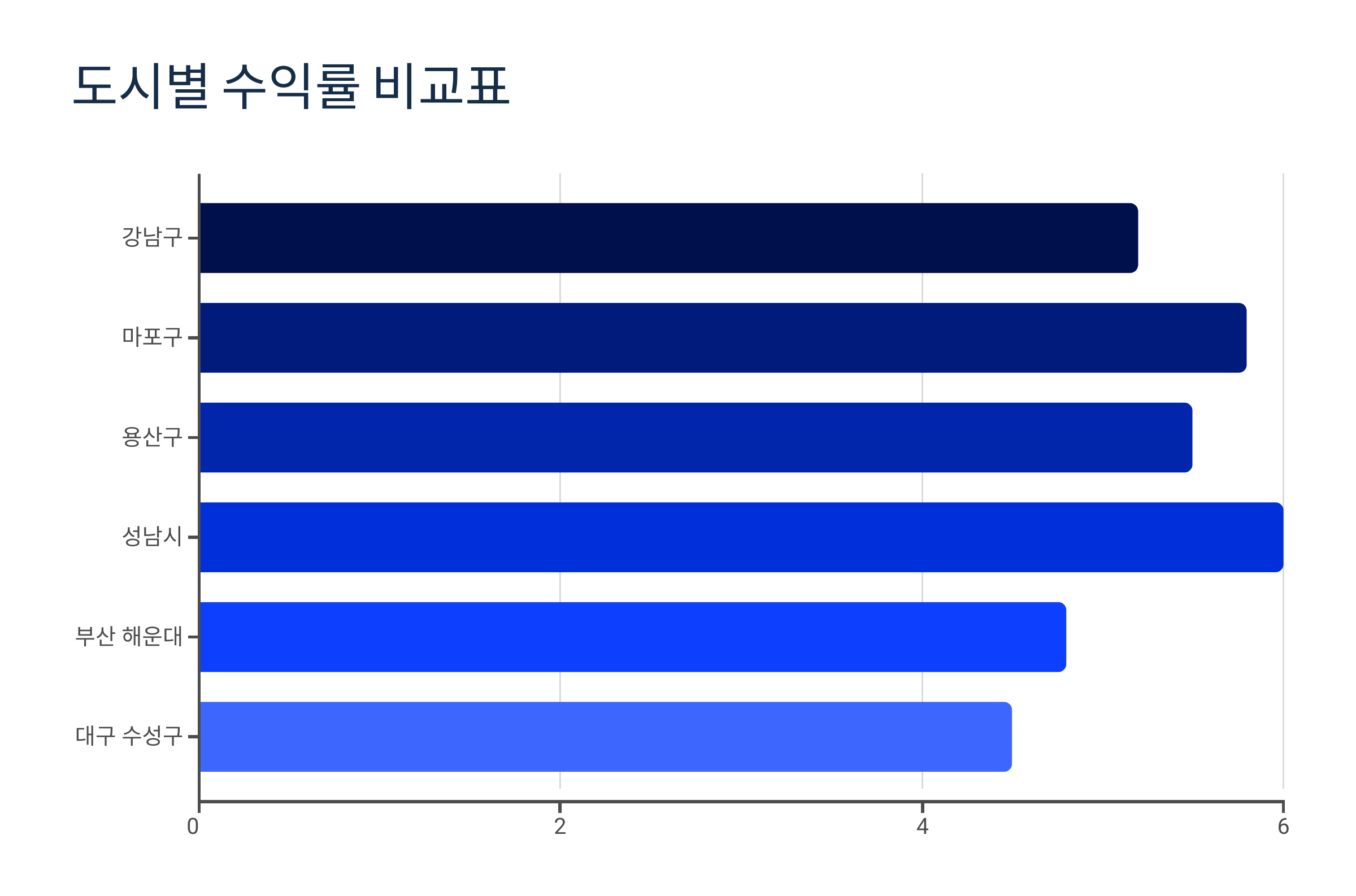 도시 평균 매입가 월세 연 수익률 공실률 서울 2억 5천만 원 85만 원 4.1% 8% 수원 1억 8천만 원 70만 원 4.6% 6% 부산 1억 6천만 원 60만 원 4.5% 7% 대전 1억 3천만 원 55만 원 5.1% 5% 📊 실제 오피스텔 수익 사례 분석