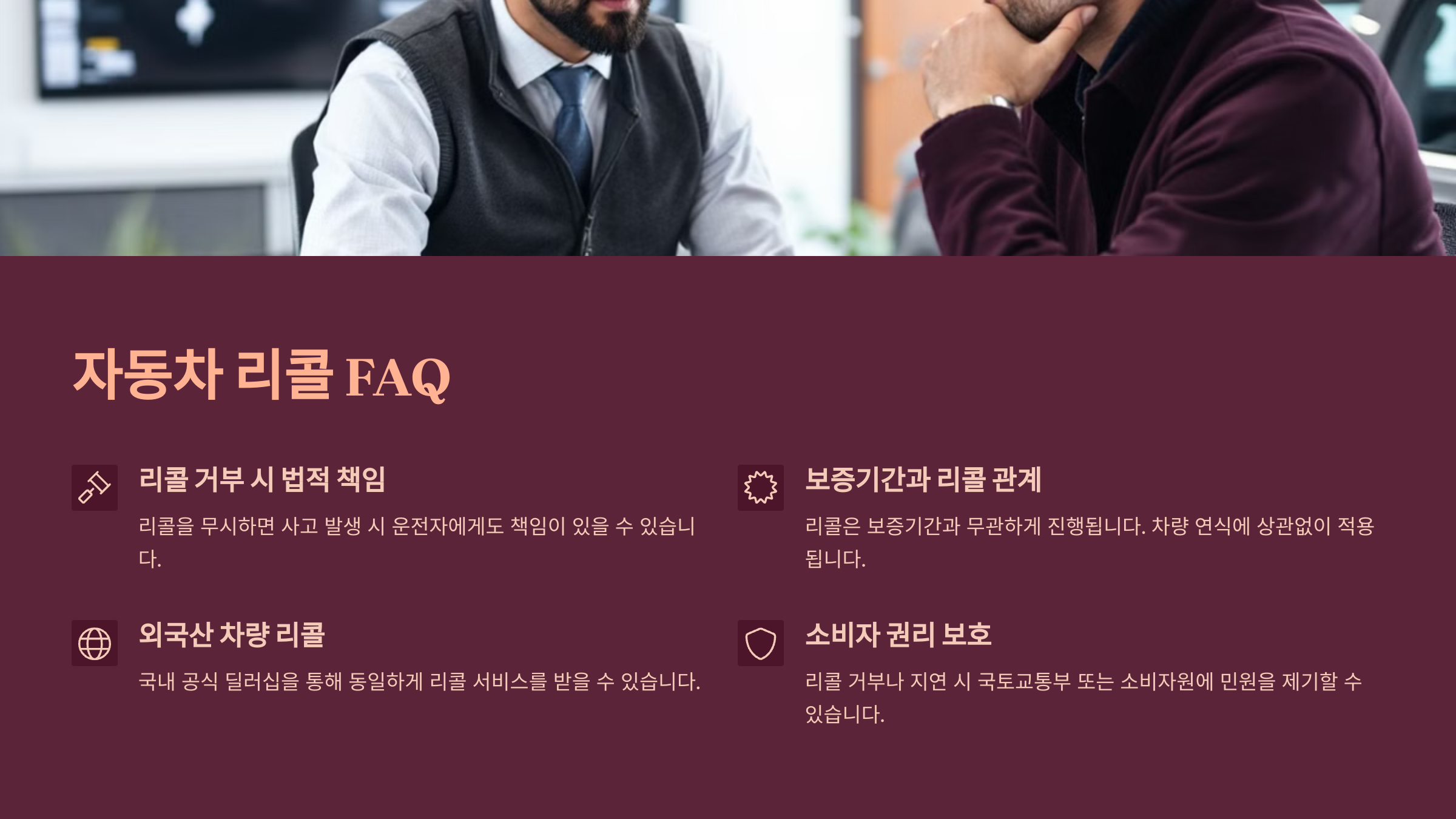 A6. 동일 결함이 반복될 경우에는 다시 리콜이 발생하거나, 정비 이력 내에서 별도로 보증 연장이 될 수 있어요. 상황에 따라 제조사 고객센터에 문의해보는 게 정확해요.
